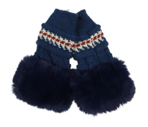 Nové - Tmavomodrá pleteno/kožešinové návleky so vzorom