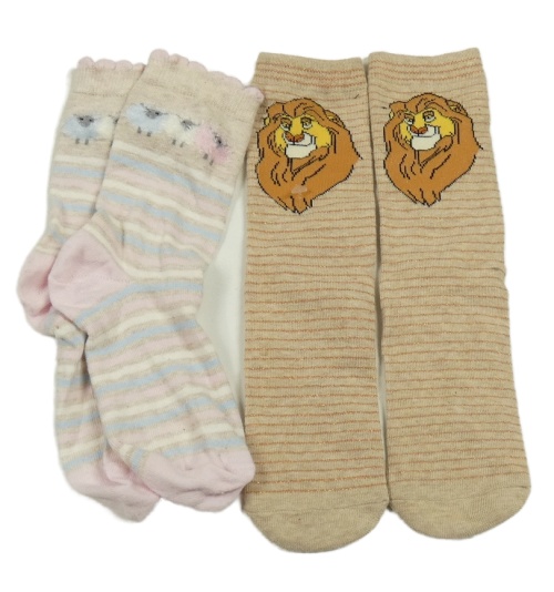 • 2set - 2x ponožky - Béžovo-barevné pruhované s ovečkami + béžové pruhované - Levíý kráľ