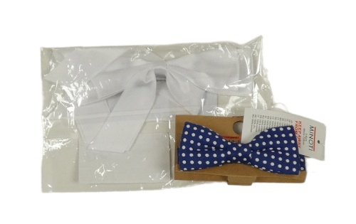 • Nové - 2Set - Biela mašľa so sponou + tmavomodro/bílý bodkovaná ý motýlok MINOTI
