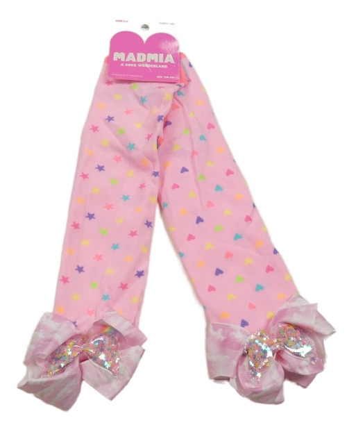 Nové - Růžovo-barevné podkolenky s hviezdami a mašľami s křídly