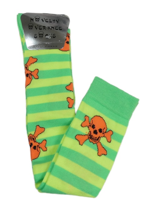 Nové - Neonově zeleno-žluté pruhované nadkolenky s lebkami vel. 31-34