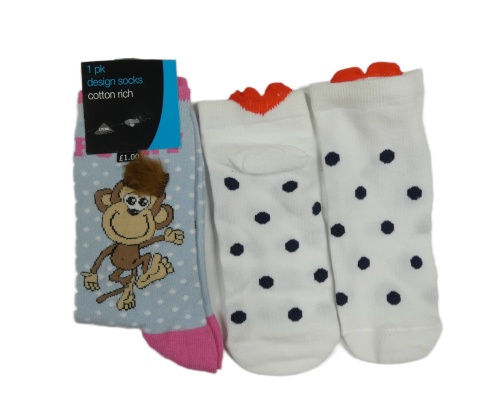 Nové - 2x ponožky - modro-růžové s opicí + bílé puntíkaté členkové