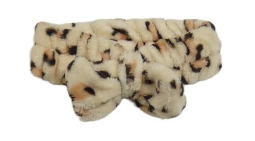 Pudrová vzorovaná plyšová kosmetická čelenka s mašlou