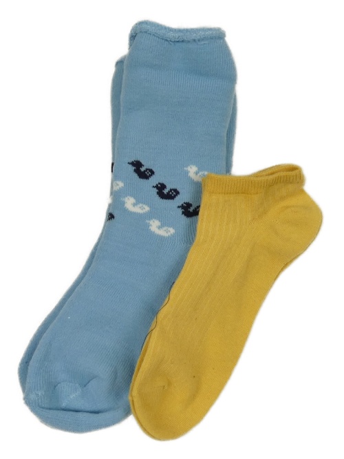 Nové - 2x ponožky - modré zateplené s kachničkami + žluté členkové