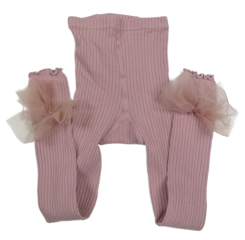 Ružové rebrované pančuskové legíny s mašľami