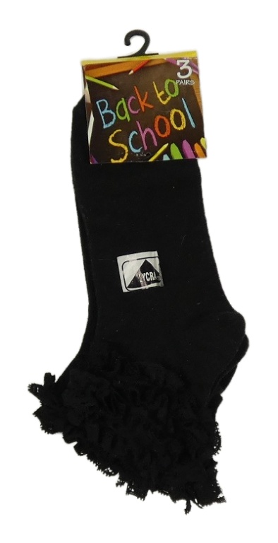 Nové - 3x - čierne členkové ponožky s volánky ve. 31-36