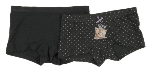 2x nohavičkové kalhotky šedé + šedé puntíkaté s mačkou