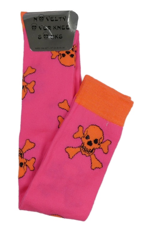 Nové - Neonově růžovo-oranžové nadkolenky s lebkami vel. 31-34