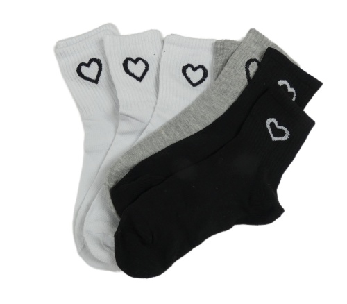 Nové - 4x - Ponožky so srdíčkem - 2x - Bílé, 1x - šedé, 1x - černé