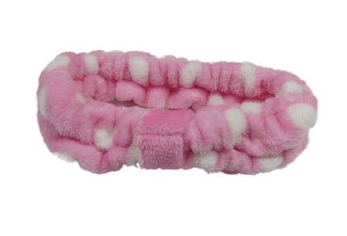 Ružovo-biela bodkovaná á plyšová kosmetická čelenka
