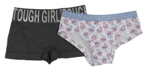 2x kalhotky - tmavošedé s nápisem + bílo-růžové s Angelou