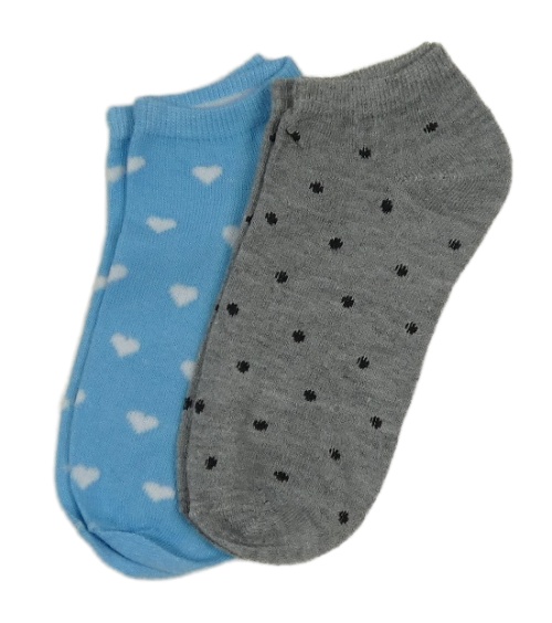 Nové - 2x kotníkové ponožky - modré so srdíčky + šedé puntíkaté