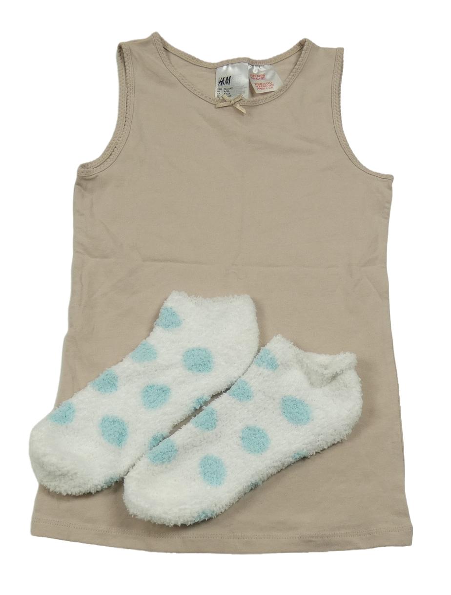 2 set - béžová košilka + bielo-modré bodkovaná é chlpaté ponožky