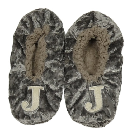Sivé zamatové zateplené papučky s písmenky vel. 35-36