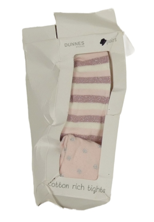 Nové - 2x punčocháče - světlerůžové s puntíky + růžovo-bílé pruhované dunnes