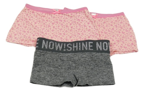 3x kalhotky - 2x růžové kvetované s motýly + tmavošedé melírované