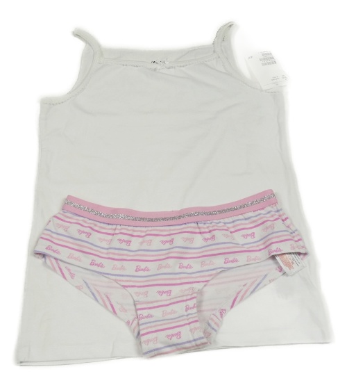 2set - Bílá košilka - nová + bílo-růžové pruhované kalhotky - Barbie