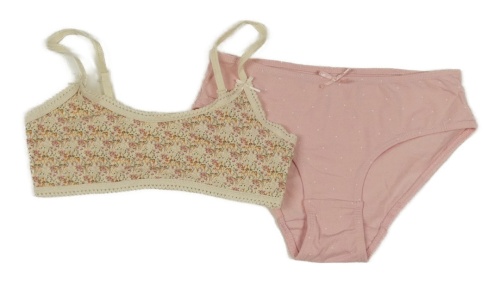 2Set - Smotanová lambáda s kvietkami ZARA + světlerůžové puntíkaté kalhotky s mašličkou
