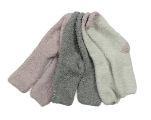 Nové - 3x - Růžové + šedé + bílé huňaté třpytivé ponožky vel. 35-38
