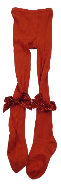 Červené rebrované pančuchy s mašľami