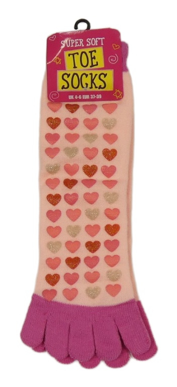 Nové - broskvovo-tmavoružové teplákové prstové ponožky so srdíčky vel. 37-39