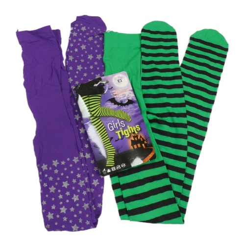 Nové - 2x - Silonky - Tmavofialové s hvězdičkami, zeleno/černé pruhované