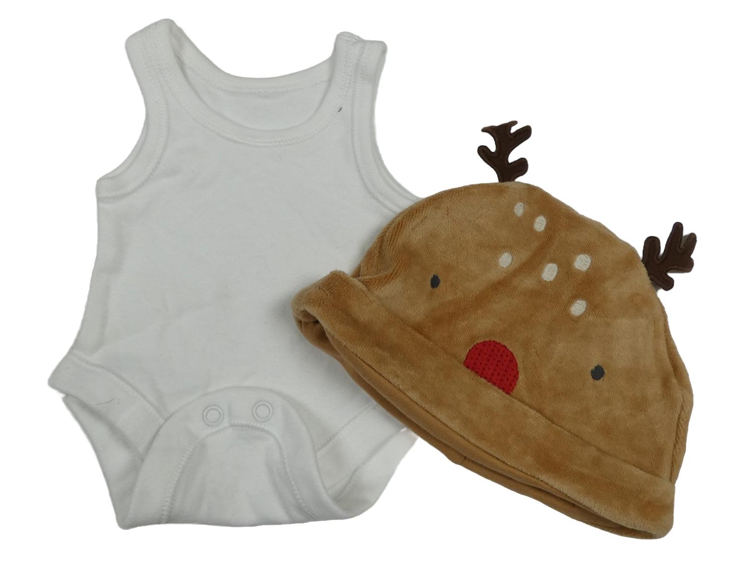 • 2 set - biele body + hnedá zamatová čepice - sob
