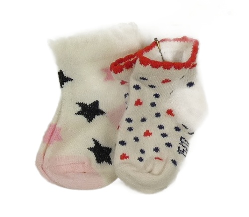 Nové - 2x ponožky - bílé s hvězdičkami + bílo-modro-červené puntíkaté