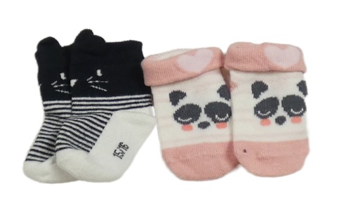 2x ponožky růžovo-bílé s pandou+ černo-bílé pruhované