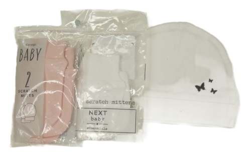 Nové - 4 set - 2x ružové rukavice + biela čapica s motýlky + bílé rukavice