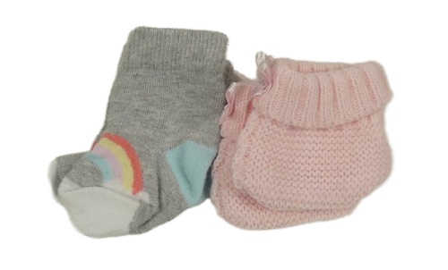 2x ponožky - růžové pletené + šedé s dúhou
