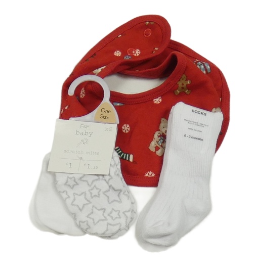 Nové - 4set - Červený podbradník s obrázky + bílé ponožky + 2xrukavice