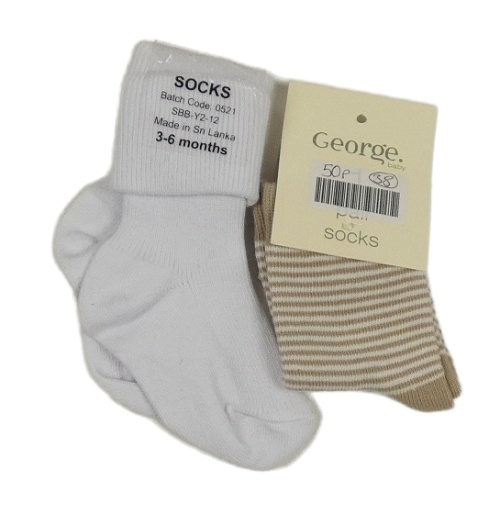 • Nové - 2x - Biele + béžovo-biele pruhované ponožky George