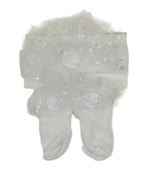 Nové - 2set - Biele vzorované ponožky s volánem + čelenka