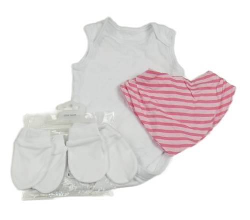 4 set - bílé body + růžový pruhovaný slinták + 2x bílé rukavice