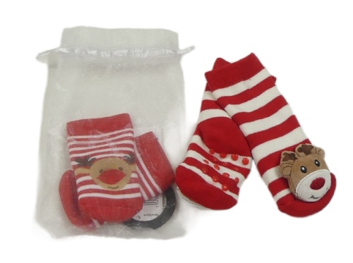 • Nové - 2x červeno-biele pruhované ponožky so sobmi
