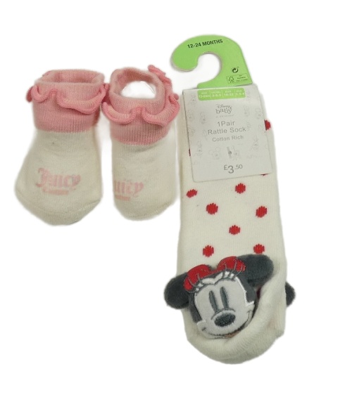 2x ponožky bílo-růžové s nápisem+ bílé s Minnie