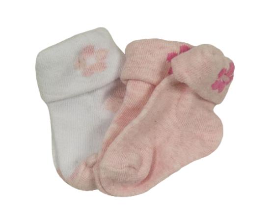 2x ponožky - bílé s květinou + růžové melírované s kvetinou