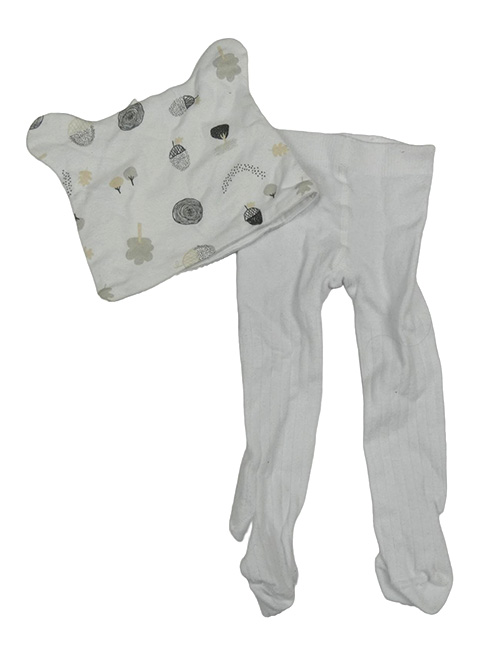 • 2 set - biele punčocháče + biela čapica s obrázkami