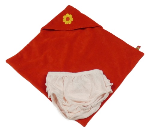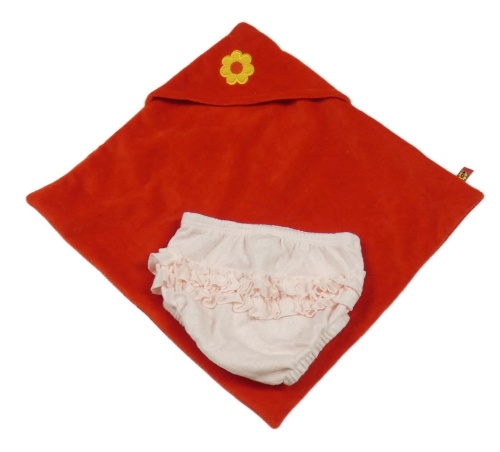 • 2set - Svetloružové perforované nohavičky s volánky + červený plyšový usínáček s kvetinou