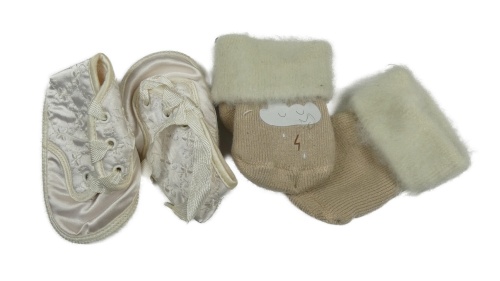 2set - Pudrové saténové capáčky + béžové teplákové ponožky