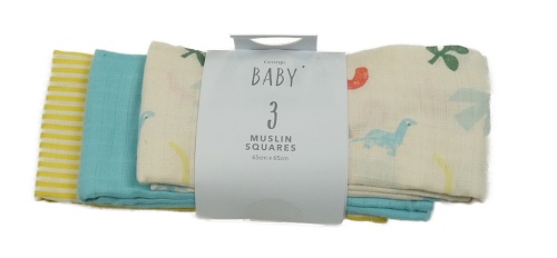 Nové - 3x - Plena - Žluto/bílá pruhovaná, azurová mušelínová, bílá mušelínová s obrázkami George