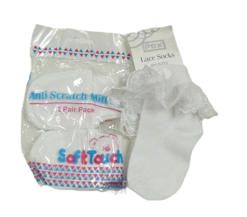Nové - 3 set - 2x biele bavlnené rukavice + ponožky s tylem