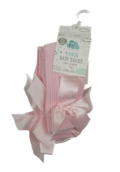 Nové - 4x svetloružové ponožky s mašlou