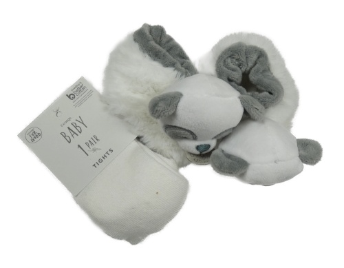 2set- Biele punčocháče+ bielo-sivé chlpaté cápačky s medvedíkom