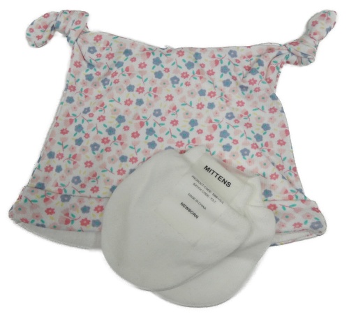 2 set - bílo-barevná květovaná čepice + bílé rukavice
