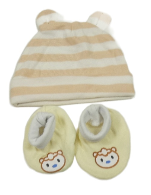 • 2set - Broskvovo-biela pruhovaná čepice + žlté cápačky s medvedíkom