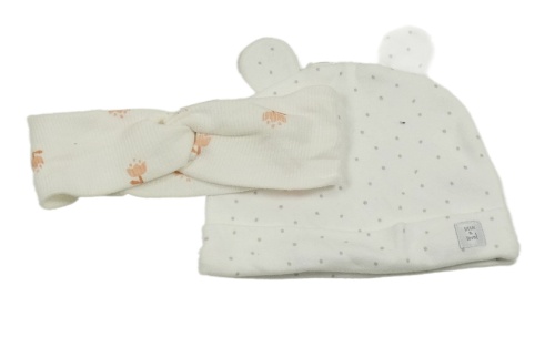 2 set - biela bodkovaná á čepice + biela čelenka s růžovými kvítky