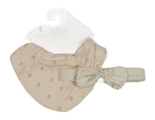 2set - Svetloružový perforovaný kvetovaný slinták + svetlobéžová čelenka s labuťou