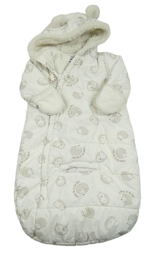 Bílý šusťákový zimní fusak do autosedačky s ježkami a kapucňou C&A